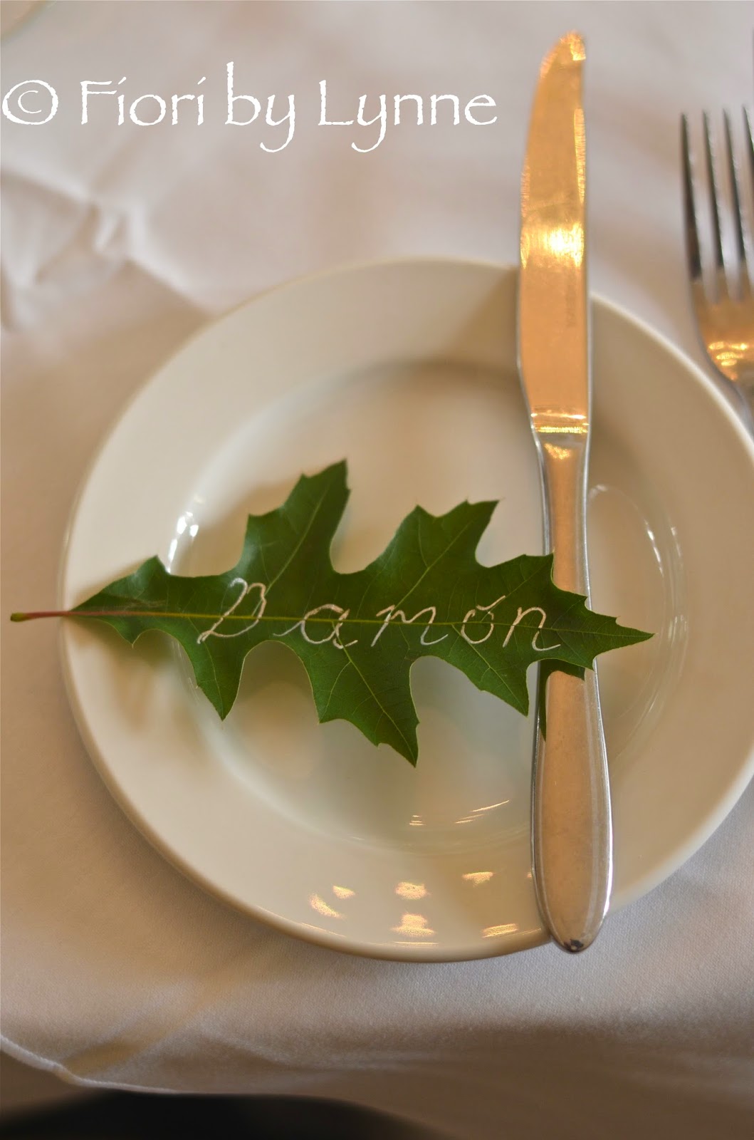 Green Oak leaves make beautiful and very natural place cards.